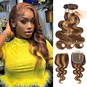 Body Wave 4/27 Honey Blonde Highlight 3 Bundles with 2x6/4x4/5x5 Lace Closure Include Water Wave Kinky Curly Deep Wave